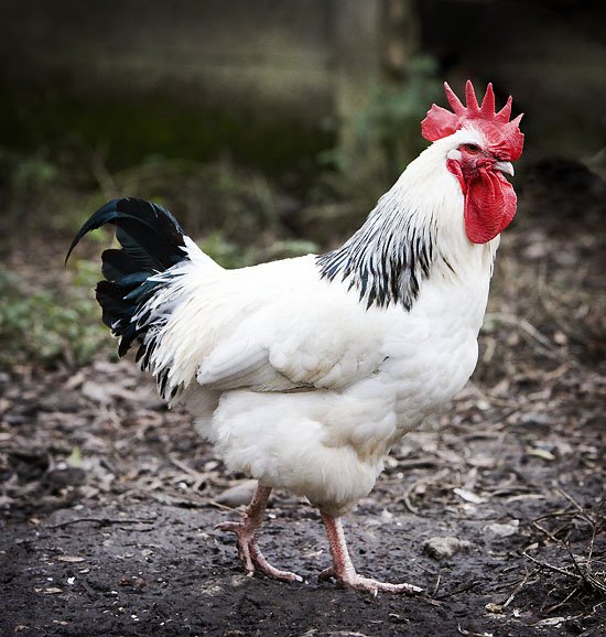 he's quite a lucky, happy cock: only eats 100% organic food, spends his day fertilising the six hens in his hareem and shouting all about it.