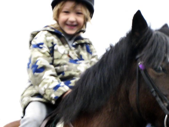 (see attached photo of thrilled son and scared(?) horse)