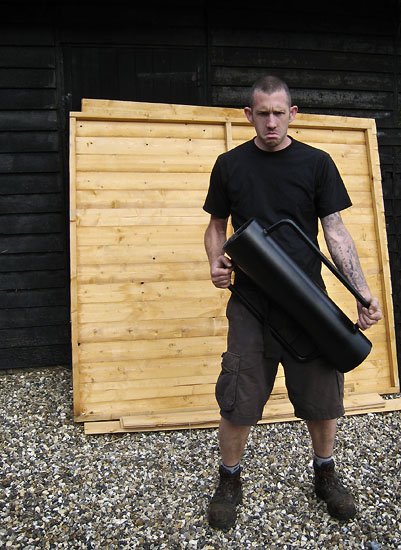 to put in the 36x 5ft 6" chestnut stakes that i did today involves holding the post driver over one's head and slamming it down on the post.
