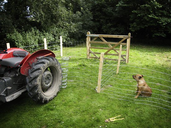 used the massey ferguson as an anchor for the winch to pull the fencing tight.