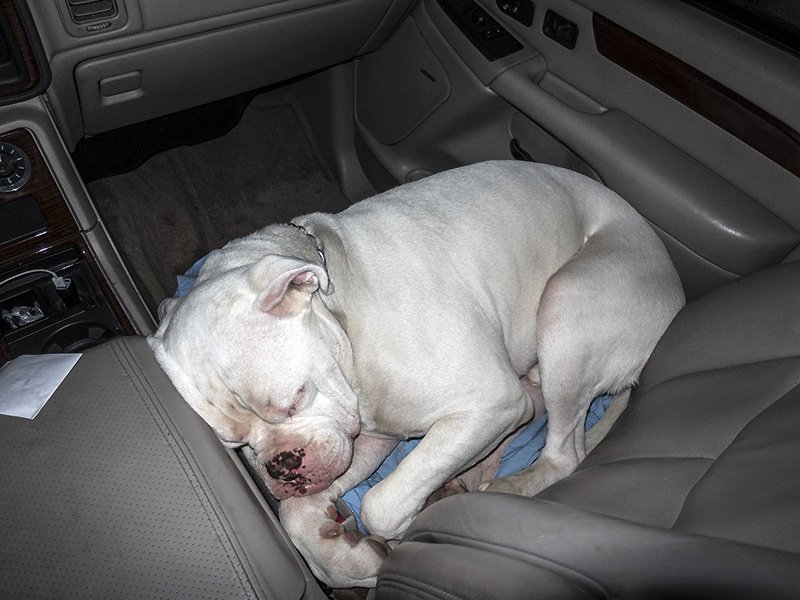 mr.bunny puppy, SUPER-knackered and sleeping in the perou-mobile on our way back to kent, in torrential rain, again.