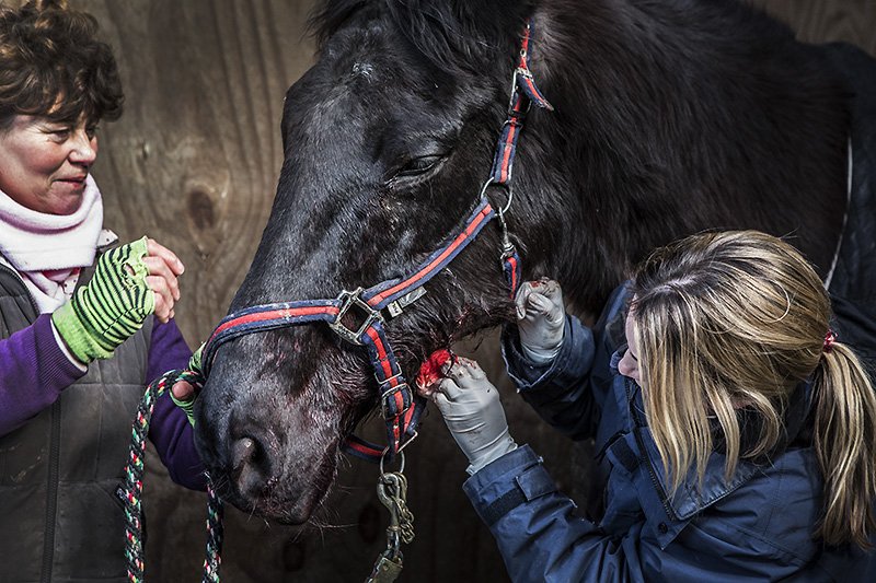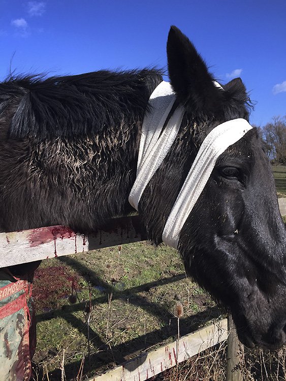 apparently horse's heads are quite difficult to bandage.
