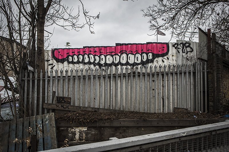 THRILLED (genuinely) to find 'sweet tooth' has got busy with the paint on our perimeter fence, where there was once a billboard (and will be again, unfortunately)