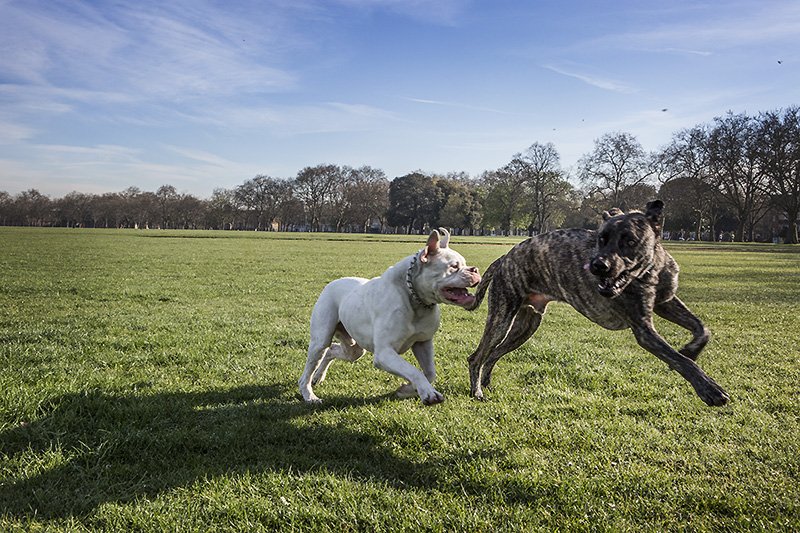 mr.bunny has a new, size appropriate friend to wrestle in the park of a morning